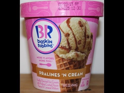 Baskin-Robbins: Pralines 'n Cream Ice Cream Review - Baskin Robbins Praline - This is a taste test/review of the Baskin-Robbins Pralines 'n Cream ice cream. It is vanilla flavored ice cream with praline coated pecan pieces & caramel ribbon.